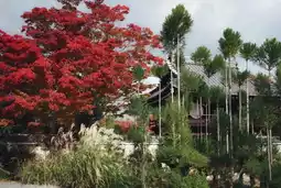 Upon arriving at the outskirts of Genko-an, the first thing that catches your eye is the red maple and green pine trees in the parking lot, creating a striking contrast like a vibrant painting. Many visitors stop here to take photos.