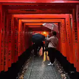 🍂⛩️🍁 The shrine is notable for the tens of thousands of red torii gates behind the shrine, forming a walkway throughout Mt. Inari, which people believe to be a sacred mountain. The god Inari represents fertility, rice harvests, and various crops, and is often accompanied by foxes. Therefore, it is not surprising to see many fox statues inside the shrine.