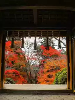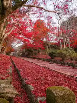 A bright red carpet spreads along the approach to the temple, and you can enjoy a tunnel of autumn leaves.