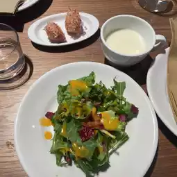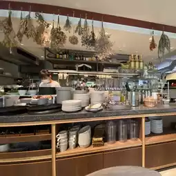A stylish restaurant attached to a lodging facility that requires reservations.