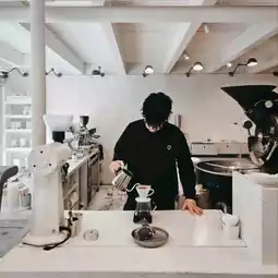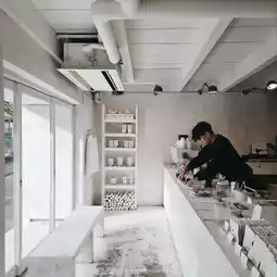 Kyoto's classic internet celebrity coffee shop, with a clean white design and an immersive sense of luxury. Downstairs is its own roasting room, and the roasting machine is independent and black, a little black in the white.