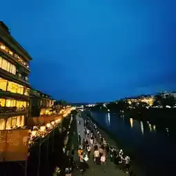 In the afternoon in Kyoto, the sun shines through the leaves and falls on the shore of the Kamogawa River. The golden spots ripple on the water, like a flowing painting. The gentle breeze brings a gentle coolness, making people want to stop and enjoy the leisure in this natural embrace. The river flows slowly, and a few ducks occasionally pass by on the clear water. They play leisurely, as if enjoying this carefree afternoon.