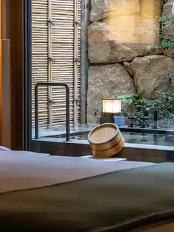 The hotel's pride and joy is in its "hot spring spa," a spa area where you can enjoy hot springs gushing out from underground within the hotel. For rooms without hot springs, guests can choose the hotel's public hot springs or private hot springs and enjoy a hot spring bath in downtown Kyoto.
