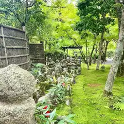 Adashino Nenbutsuji Temple is located in Arashiyama, Kyoto City. The temple grounds are filled with hundreds of stone statues built to honor the spirits of the homeless. around the beginning of the 9th century, the monk Kobo Daishi (Kukai), the founder of the Mantrayana sect of Japanese Buddhism, wandered into the area and found the bones of many homeless people left unburied. He asked the locals to help build a temple. behind the temple is a beautiful bamboo path that is not crowded. It is a place of beautiful architecture and many historical relics and cultural relics. The surrounding environment of the temple is quiet, making it a wonderful place and well worth a visit.