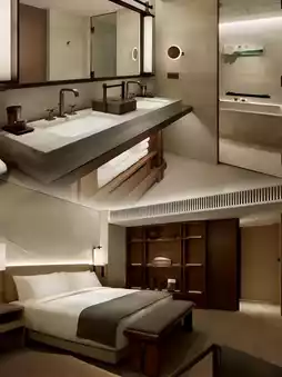 The room design showcases Japanese aesthetics to the fullest. The traditional Japanese style is paired with modern comfort facilities, and as soon as you step into the room, the tatami mat emits a faint grassy fragrance that instantly relaxes you. The large windows offer views of the city of Kyoto or the tranquil courtyard, and waking up in the morning when the sun shines into the room makes life feel gentle. The toiletries in the room are also high-end brands, and the details are luxurious.