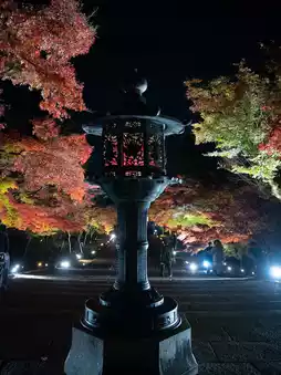 The historic five-story pagoda and Omuro Palace are illuminated in soft light, and the red and orange autumn leaves stand out against the night sky, creating a breathtaking beauty🍂. The illuminated autumn leaves reflected in the garden create a spectacular mirror-like scene on the surface of the water, and you can't help but stare at them💡.