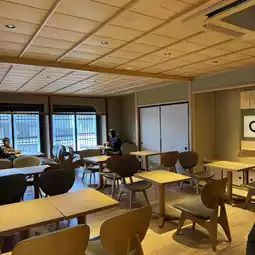 The vibe is relaxed, with a modern take on traditional Japanese design. It’s a cozy spot, ideal for a break after a long walk through the historical areas around Kiyomizu-dera.