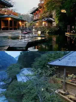 ♨️The hotel's hot spring area is built on the mountain, and the water source comes from the pure waters of Arashiyama, where you can experience an open-air hot spring.