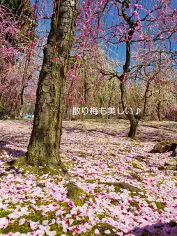 The "Weeping Plum and Camellia Festival" is held every year from February to March, and many spectators visit. The plum blossoms will also fall in the latter half of the season, but the carpet of "falling plum blossoms" that covers the carpet of moss is also a sight to behold🌸😊