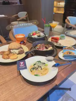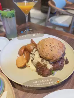 ✔︎ The 7 Tapas Plate is a unique tofu skin taco with white fish and meat in between✨ The crispy tofu skin dough is interesting because it looks like a rice cracker! This was my first time eating heshiko, but it was salty and made the perfect snack 😍 ✔︎︎ Kyoto Vegetable Vapore has a wide variety of vegetables and they are all huge 😂 Steaming them in herb water is also very stylish ✨ The Kinzanji miso sauce is delicious, but the vegetables are sweet even if you eat them without any dipping sauce 😳! ✔︎ Hokkaido Saroma Black Beef Fajitas Diced steak-level meat, and plenty of vegetables😍 Teriyaki sauce, salsa sauce, and herb sauce, wrapped in a tortilla, it's delicious again~🤤 ✔︎ Lightly pickled Heshiko and Kujo leek aglio e olio I wrote that it's thinner than normal noodles, but the noodles have a plump texture and you don't notice that they're thin😂 Garlic & oil & salty, it's no wonder they're delicious🤭 ✔︎ 100% Beef Smash Burger I really like this thin and crispy patty😮💨 The buns are also crispy on the edges, which I also really like😮💨 The sauce is rich, the fries are filling, and even the slightly junky parts are delicious!! I'm so full I feel like my stomach's going to burst😂 The inside of the store is spacious, with many tables and sofa seats, so it's very convenient, and since it's right next to the station, it's great that you can use it even on rainy days! It's perfect for lunch, dinner, and all sorts of occasions 🙌 You can spend a relaxing time here, so you'll end up staying for a long time 🍷 (before I knew it, about 3 hours had passed 😂)