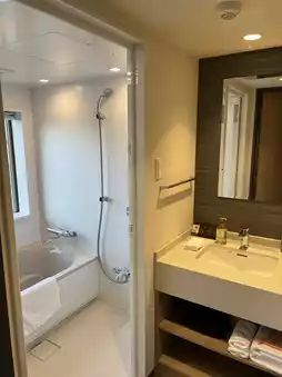 The hotel is located two or three minutes away from Kyoto Station. It costs about HKD 500-600 per night for two people. It is absolutely good value for money, with an average cost of just over HKD 200 per person! Check-in time is 3 o'clock. If you arrive 30 minutes early, the front desk still cannot check you in. However, you can store your luggage for free, and the hotel will deliver your luggage to the room when the time comes. When I entered the room, I found that the size was amazing! The bathroom is separated into dry and wet areas, and the bathtub has a view! There is a small sofa in the room to sit on, the TV also has nexflix and youtube, and the bed is very comfortable! Really good! The hotel also has a large public bath, so if you want to go there, please pay attention to the time~