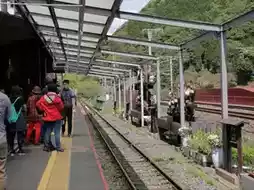 The SAGANO ROMANTIC TRAIN is a classic steam train known as Japan's romantic train. We had the opportunity to ride this train in April, taking the JR train from Kyoto to JR Umahori Station to purchase tickets for the romantic train at Torokko Kameoka. The 7.3-kilometer journey takes about 25 minutes, passing by the emerald green Hozugawa River. The trees along the way provide a lot of shade, making it a very interesting scenic train route.