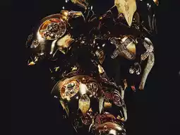 In the center of the exhibition room is a large, shimmering gold skull sculpture. Inside, there is a reflection of ancient Japanese art, subtly conveying the convergence of the past and present.
