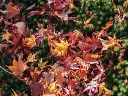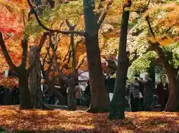 There is also a beautiful wooden bridge amidst red maple leaves.