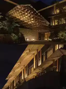 📝The hotel's overall architecture is designed by renowned architect Kengo Kuma, inspired by the ethereal beauty of Japan's traditional "Noh" art. The design revolves around the concept of "yūgen" (mysterious and quiet beauty), incorporating traditional architectural techniques while blending in contemporary decorative elements. The overall structure echoes the scenery of Higashiyama, evoking a sense of longing for ethereal elegance and tranquility. The exterior is made of local cypress, exuding the cultural essence of Kyoto's traditional craftsmanship. Large floor-to-ceiling windows and open-plan design allow the surrounding mountains and lush gardens to flow into the interior space, offering modern comfort while also allowing you to experience the beauty of nature and tranquility. You can escape the hustle and bustle of the city and explore Kyoto's cultural heritage.