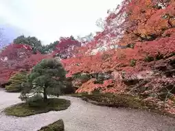 Meaning “heaven given,” the Tenjuan Temple is a small sub temple of Nanzen-ji Temple, with a main hall, a study and two gardens of 17th century construction. The day was brightly lit, but the Tenjuan Garden was cool with a warm penumbra, as trees with lush red foliage line the small pond. Large carps in gold and red swam sluggishly in the pond, their tails stroking the fallen maple leaves floating on the pond’s surface.