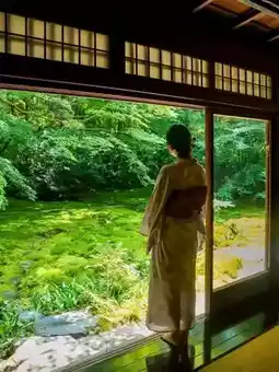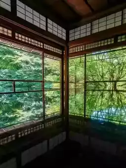 Open only twice a year in spring🌳 and autumn🍁. Named "Rurikoin" for its vibrant green moss and the beautiful interplay of light and shadow in the garden. 👉🏻Take photos on the reflective table! You'll be surrounded by the lush green waves🌊 of Mount Hiei.