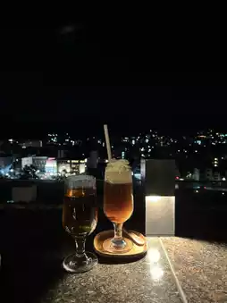 A stylish rooftop bar where you can enjoy drinks while soaking your feet in a footbath✨