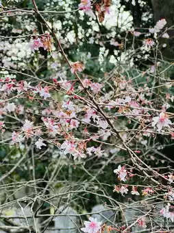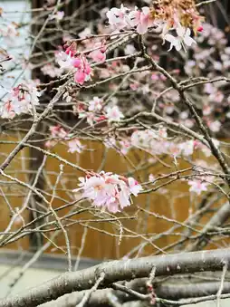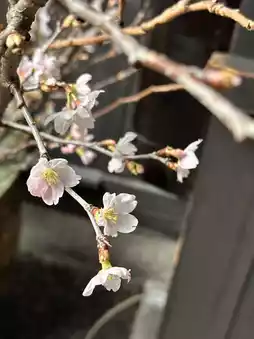 I heard they have many ancient cherry trees and rare varieties here. I don't know if this one is, but I haven't seen it anywhere else. They say it blooms twice a year, and when I went to see it today, the flowers were still there🌼 (other cherry trees were bare).