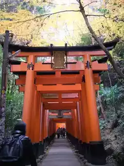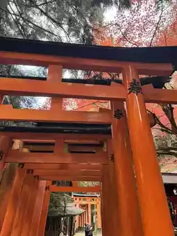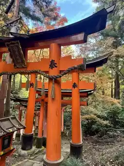 The best time to see the red leaves (late November to early December), the paths in the shrine are surrounded by deep red leaves and thousands of vermilion torii gates leading up to Mount Inari, offering a unique charm under the warm autumn sunlight. The fresh, cool air enhances the hiking experience, making the journey through the forest trails even more enjoyable.