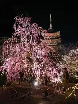 The cherry blossoms at Toji Temple are now illuminated at night. The photo was taken on March 20th, but there were still many buds. I think the best time to see them will be the first week of April. I'm looking forward to seeing them bloom all at once☺️𓂃𓈒𓏸︎︎︎︎Spot: Toji Temple Address: 1 Kujo-cho, Minami-ku, Kyoto City Date of illumination: 3/15~4/16 Time: 18:00~21:30 (reception until 21:00) Access: 10-minute walk from Toji Station on the Kintetsu Kyoto Line Admission fee: 1,000 yen, 500 yen for junior high school students and younger Parking: 1,000 yen Date of photo shoot: 2025.3/20 19:00~21:00 What I learned when I went There were still many cherry blossom buds, but the Kawazu cherry blossoms were in full bloom and the drooping plum blossoms were in full bloom♡ It was great to take photos surrounded by the scent☺️𓂃𓈒𓏸︎︎︎︎#Spring excitement news #Comments welcome #I want to be surrounded by the scent #Toji Temple #Kyoto