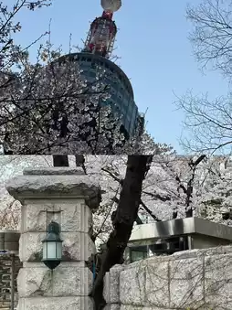 🎏Tokyo Tower: During the romantic cherry blossom season, ascend Tokyo Tower and overlook the entire city of Tokyo adorned with cherry blossoms. The view is breathtaking. At night, the illuminated Tokyo Tower complements the surrounding cherry blossoms, creating a romantic atmosphere perfect for couples. You can take amazing photos in minutes📷.