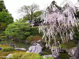 The spring scenery of Jonangu Shrine is the garden of weeping plum blossoms and camellias.