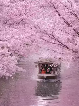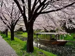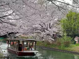 The Jikkokubune Canal Cruise in Kyoto offers a unique way to experience the beauty of cherry blossoms in the city. During the cherry blossom season, typically in late March to early April, the canal cruise takes visitors on a scenic journey through the Higashiyama district, known for its historic streets and stunning views. Cherry trees line the canal, creating a picturesque backdrop as you glide along the water on traditional flat-bottomed boats called "jikkokubune." Passengers can admire the delicate pink blossoms reflected in the water while learning about the history and culture of Kyoto from knowledgeable guides. It's a tranquil and enchanting way to enjoy the cherry blossoms and soak in the beauty of Kyoto during this special time of year.