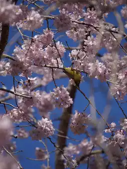 There were many birds here, and everyone was desperate to take photos of the cherry blossoms and birds.