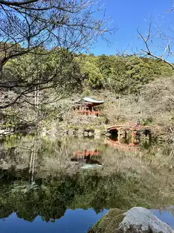 If you go further into the Daigoji Kannon Hall, you will find the Bentendo Hall standing on the Benten Pond. This is famous as a spot to see autumn leaves, and in the season when the leaves and ginkgo trees change color, the vermilion-painted Bentendo Hall blends well with the surface of the water, making it a famous spot for viewing autumn leaves. Inside the hall, Benzaiten, who is widely known as the goddess of the arts and sciences, including music, and knowledge, is enshrined. Cherry blossoms are also blooming around the Benten Pond, and I was able to take a shot of the Bentendo Hall and cherry blossoms reflected in the pond. #0 yen spring trip #cherry blossom spot #cherry blossom #Kyoto #Kyoto sightseeing #Kyoto trip #Daigoji Temple