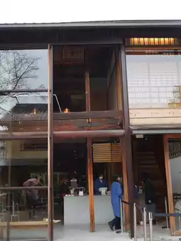 Blue Bottle Coffee is a renovated traditional Kyoto townhouse with a two-story structure that is over 100 years old