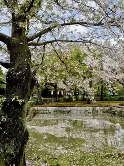 ✔ Beautiful cherry blossoms in a peaceful Zen temple setting