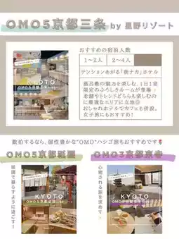 ✔︎ OMO5 Kyoto Sanjo (Omo) by Hoshino Resorts Address | 434-1 Ebisu-cho, Kawaramachi-dori Sanjoagaru, Nakagyo-ku, Kyoto City Access | 5 minutes walk from Keihan "Sanjo" station Check in | 15:00 Check out | 11:00