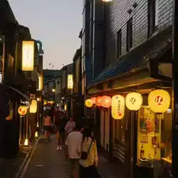 Walk a little further across the bridge and you will find Pontocho or the unique lantern market because there are lanterns all along the way. Most of the food is fresh grilled sea fish, cold beer.