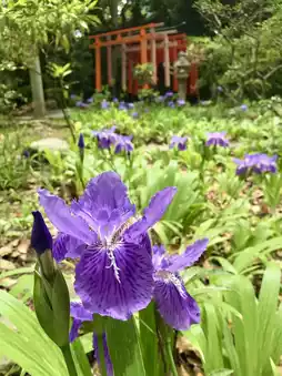 ✔ See Ichihatsu—the earliest-blooming iris—in a peaceful shrine setting