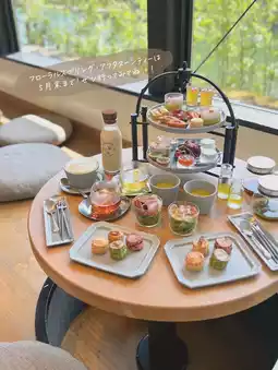 Enjoy colorful spring-themed sweets and savory dishes in a special window seat with a great view of the greenery outside✨