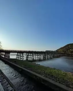 An elegant landmark over Katsura River! During cherry blossom season, the entire Hozu River turns into pink clouds. Must try summer citrus candy at "Oimatsu" by the bridge, evening walks transform you into Heian nobility~