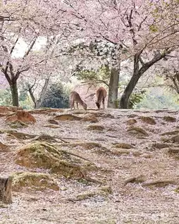 Spend healing moments with 1,300 wild deer! Pull out some deer crackers (available for purchase on-site), and the bowing deer will surround you instantly! The cherry blossom and deer scenery in spring is absolutely dreamy~