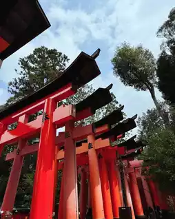 Head shrine of 40,000 Inari shrines across Japan! Thousands of torii gates stretch from foot to summit of Mount Inari, with donors' names carved on vermillion pillars.