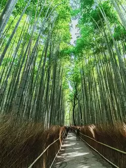 A hundred-meter bamboo forest blocking the sun, like a mystical green realm in early morning mist~ Make a love wish at Nonomiya Shrine, and don't forget to visit %Arabica Arashiyama!