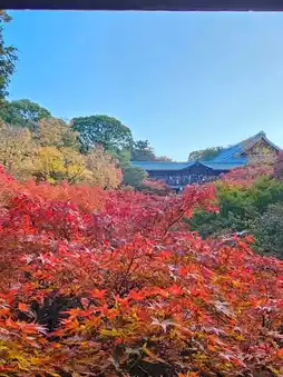 Start early from Osaka or downtown Kyoto, taking the JR or Keihan line to Kyoto’s Tofukuji Temple (recommended to arrive before 9 AM). This is one of Kyoto’s four major autumn foliage spots, with the biggest highlight being the view from Tsutenkyo Bridge overlooking the valley of red leaves below, layers of red, orange, and yellow blending dreamily with the thousand-year-old temple. Be sure to set aside time for photos and a leisurely stroll, about 1.5 to 2 hours.
