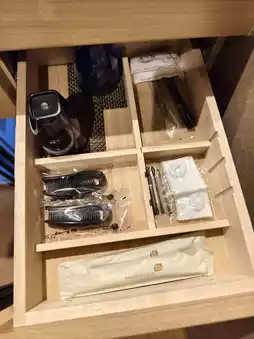 Basic toiletries including shampoo, conditioner, toothpaste, toothbrush and comb can be found in the room.