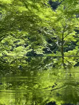 Next to the terrace seat is a table filled with water, and if you sit in front of the table, you can enjoy the symmetry of the view in front of you reflected on the water surface, creating a "water mirror".