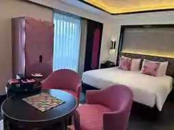 Each guest room is equipped with a "Gourmet Bar" where you can indulge in Fauchon's sweets and tea, offering a truly luxurious experience.