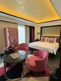 "Fauchon Hotel Kyoto" stands out with its vibrant pink-themed design.