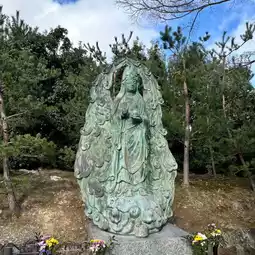 It was installed after the war to ensure aviation safety around the world and to commemorate those involved in aviation (^^) The Kannon with a kind face has a cross on its chest (^^)