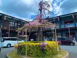The cherry blossoms are blooming in the rotary in front of JR Yamashina Station, and it's very beautiful!
