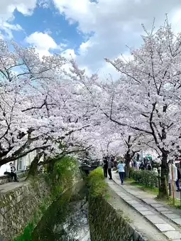 #cherryblossom25 This place is like a sakura dream walk. It’s this narrow little path along a canal, lined with cherry trees that kinda arch over you and make it feel like you're in a pink tunnel. Super peaceful, not too busy, and the vibe is just... calm. I get why it’s called the “philosopher’s path,” ‘cause it’s totally the kind of spot where you start thinking deep stuff without even trying. I just strolled, sipped some tea, and let the petals do their thing. There are cute little shops and cafes along the way too if you wanna stop for a snack or just people-watch. It’s not flashy or dramatic, just simple and really pretty in that quiet Kyoto way. Great spot if you’re into chill vibes, slow walks, and lowkey magical sakura views. Definitely one of those places that makes you feel super at peace.