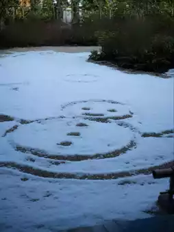 The compact drop-off area at the entrance is easy to miss. In the morning, there were no staff to greet guests, and after getting out of the car, I had to walk through a long corridor. Coincidentally, it was snowing in Kyoto, and the hotel had drawn cute little snowmen in the garden—a charming touch.
