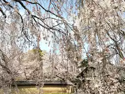 The weeping cherry blossoms here cascade down like a shower of petals, creating a magical and dreamlike atmosphere as they sway gently in the breeze.